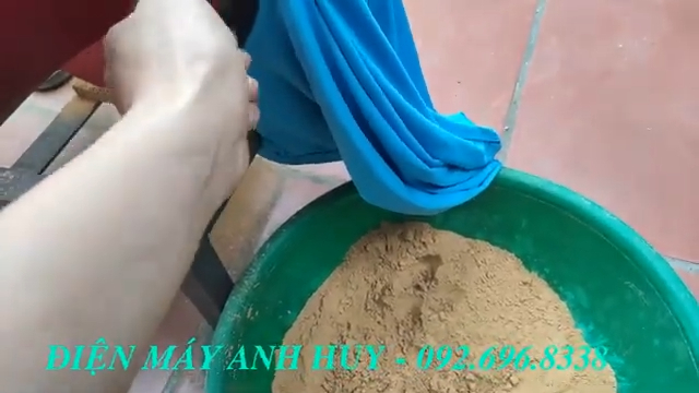Máy có thể nghiền nhiều loại nguyên liệu khô khác nhau như đỗ tương rang, đậu xanh, đậu đỏ, gạo rang hoặc các loại hạt ngũ cốc để làm bột dinh dưỡng. Thành phẩm sau khi nghiền rất mịn, thậm chí bột có thể bám vào cả vân tay khi cầm lên, cho thấy độ mịn khá cao so với nhiều dòng máy nghiền thông thường.