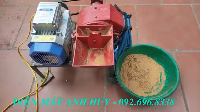 Máy sử dụng mô tơ công suất khoảng 3,5kW với tốc độ quay khoảng 2.900 vòng mỗi phút, tương đương khoảng 4,67HP. Thiết bị có thể sử dụng nguồn điện dân dụng 220V một pha nên rất thuận tiện cho các hộ gia đình hoặc cơ sở sản xuất nhỏ. Với công suất này, máy có lực nghiền mạnh, giúp xử lý nhiều loại nguyên liệu khô khác nhau một cách nhanh chóng.