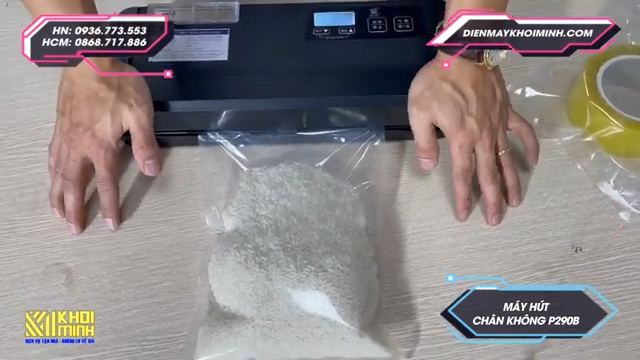 Quy trình hút chân không thực phẩm bằng máy P290B với túi hai mặt trơn