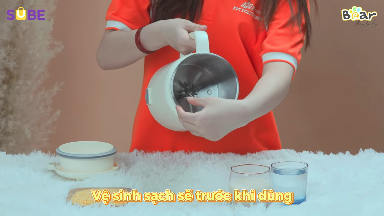 Một lưu ý quan trọng khi sử dụng máy làm sữa hạt công nghiệp là sau mỗi lần sử dụng nên vệ sinh máy sạch sẽ, anh chị cần rửa sạch phần cối xay, lưỡi dao và nắp máy để loại bỏ cặn nguyên liệu còn bám lại, việc vệ sinh thường xuyên giúp máy hoạt động ổn định và đảm bảo vệ sinh an toàn thực phẩm. Ngoài ra khi vệ sinh máy làm sữa hạt công nghiệp anh chị cần lưu ý không để nước tiếp xúc trực tiếp với phần động cơ hoặc bảng điều khiển điện để tránh ảnh hưởng đến độ bền và độ an toàn của thiết bị.