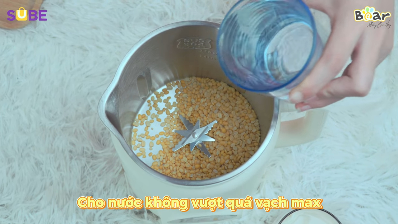 Bước đầu tiên khi sử dụng máy làm sữa hạt công nghiệp là chuẩn bị nguyên liệu, các loại hạt như đậu nành, hạnh nhân, óc chó, đậu xanh hoặc các loại hạt dinh dưỡng khác nên được ngâm trước trong nước sạch để hạt mềm hơn, điều này giúp quá trình xay và nấu sữa diễn ra hiệu quả hơn và giúp sữa thành phẩm mịn hơn. Sau khi chuẩn bị nguyên liệu, anh chị tiến hành cho hạt vào máy làm sữa hạt công nghiệp, sau đó thêm lượng nước phù hợp theo dung tích của máy để đảm bảo máy hoạt động ổn định và không bị quá tải trong quá trình xay nấu.