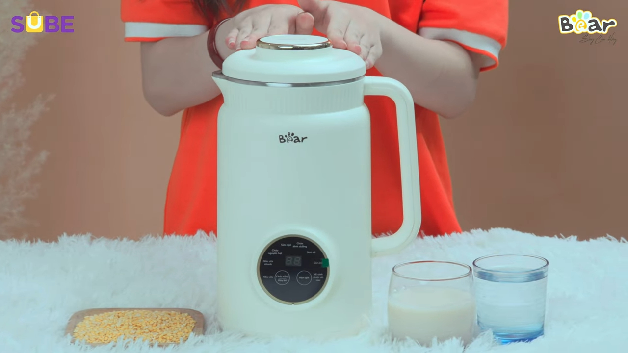 Tiếp theo anh chị đóng nắp máy lại và kiểm tra xem nắp đã được lắp đúng vị trí hay chưa, đây là bước quan trọng để đảm bảo máy làm sữa hạt công nghiệp hoạt động an toàn trong quá trình xay và nấu. Sau khi hoàn tất các bước chuẩn bị, anh chị tiến hành cấp nguồn điện cho máy và sử dụng bảng điều khiển để lựa chọn chương trình nấu phù hợp với loại sữa hạt cần chế biến, nhiều dòng máy làm sữa hạt công nghiệp hiện nay được tích hợp các chế độ nấu sẵn giúp người dùng chỉ cần lựa chọn chương trình là máy sẽ tự động thực hiện toàn bộ quá trình xay và nấu. Trong quá trình hoạt động, máy làm sữa hạt công nghiệp sẽ thực hiện đồng thời các bước xay nhuyễn nguyên liệu và gia nhiệt để nấu chín sữa hạt, nhờ vậy người dùng không cần phải canh chừng liên tục như khi nấu bằng phương pháp thủ công. Sau khi quá trình nấu hoàn tất, máy sẽ phát tín hiệu thông báo và lúc này anh chị có thể mở nắp máy để lấy sữa hạt ra ngoài, nếu cần có thể lọc lại sữa qua rây hoặc túi lọc để loại bỏ bã hạt và giúp sữa thành phẩm mịn hơn.