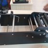 Tiếp theo là núm điều chỉnh công suất của máy. Máy có 10 mức công suất, với công suất tối đa là 1800W. Mức công suất cần cài đặt sẽ phụ thuộc vào đường kính miệng chai lọ cần dán màng. Đối với các loại chai có đường kính miệng nhỏ thì nên tăng công suất lên, còn đối với chai có đường kính miệng lớn thì cần giảm công suất xuống để đạt hiệu quả tốt nhất. Phía trên là hai đồng hồ hiển thị ampe kế, khi sản phẩm đi qua vùng cảm ứng thì đồng hồ sẽ hiển thị dòng điện để bạn theo dõi và điều chỉnh công suất cho phù hợp.