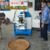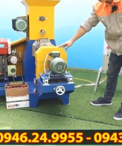 Trước khi chạy máy cần kiểm tra hệ thống dao cắt và mặt sàng. Dao cắt phải được điều chỉnh sát với mặt sàng vừa đủ để cắt viên cám gọn và đẹp. Máy sử dụng đầu nổ 15HP, vì vậy khi vận hành cần điều chỉnh ga ở mức phù hợp để đảm bảo tốc độ quay ổn định, tránh tình trạng máy chạy quá yếu hoặc quá tải. Hệ thống của máy gồm motor cấp liệu và motor dao cắt, cả hai đều có thể điều chỉnh tốc độ thông qua bộ điều khiển và biến tần. Khi tăng số trên bảng điều khiển thì tốc độ cấp liệu và tốc độ dao cắt sẽ tăng theo. Khi nhiệt độ đã đạt yêu cầu, bà con tiến hành khởi động đầu nổ cho máy chạy trước một lúc để ổn định. Sau đó cho một ít nước vào trục xoắn để làm trơn. Tiếp theo bật motor cấp liệu và dao cắt. Lúc đầu nên cho nguyên liệu vào từ từ, khi máy đã ra viên cám ổn định thì mới tăng dần lượng nguyên liệu cấp vào. Trong quá trình vận hành cần quan sát để điều chỉnh tốc độ cấp liệu và dao cắt sao cho viên cám ra đều, đẹp và không bị gãy.