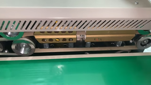 Máy hàn miệng túi tự động KATA có thiết kế thông minh với các nút điều khiển dễ dàng sử dụng. Bạn chỉ cần điều chỉnh nhiệt độ và tốc độ băng tải để phù hợp với loại túi sử dụng, từ túi mỏng đến túi dày như túi nhôm, túi bạc. Đặc biệt, máy được trang bị hệ thống điều khiển nhiệt độ thông minh, giúp bạn dễ dàng cài đặt nhiệt độ hàn phù hợp, đảm bảo mối hàn đẹp và chắc chắn mà không bị cháy hay biến dạng.