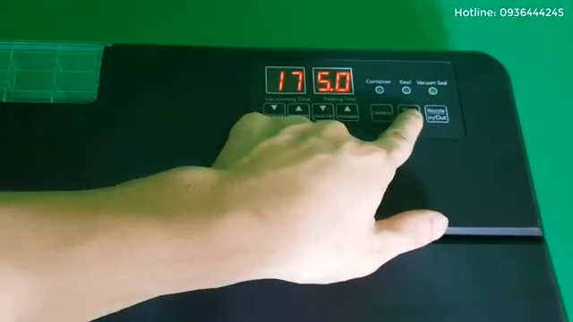 Sau khi đặt túi vào đúng vị trí, người dùng nhấn nút Start để máy bắt đầu hút không khí bên trong túi. Máy sẽ tự động hút hết không khí ra ngoài để tạo môi trường chân không giúp bảo quản thực phẩm tốt hơn. Khi quá trình hút hoàn tất, người dùng nhấn nút In/Out để máy tiến hành hàn miệng túi. Lúc này miệng túi sẽ được hàn kín lại, tạo thành túi chân không hoàn chỉnh giúp ngăn không khí lọt vào bên trong.