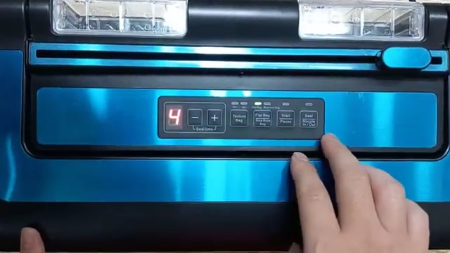 Trước khi sử dụng máy hút chân không PW300A siêu cao cấp, chúng ta cần tìm hiểu sơ qua các nút chức năng và thông số hiển thị trên máy để nắm rõ cách hoạt động. Trên màn hình có nút Seal Time, đây là thời gian hàn miệng túi. Thời gian này có thể cài đặt tùy theo độ dày hoặc độ dài của từng loại túi, trên bảng điều khiển có nút tăng và giảm thời gian. Nếu túi lớn và dày thì tăng thời gian hàn lên, còn đối với túi mỏng thông thường thì chỉ cần cài đặt khoảng 4 đến 5 giây là phù hợp. Ví dụ với loại túi theo máy thì chỉ cần cài khoảng 4 – 5 giây là đủ, tùy vào lượng thực phẩm bên trong túi mà chúng ta điều chỉnh cho hợp lý.