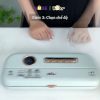 - Set 1: Thời gian hút chân không. Thời gian có thể điều chỉnh tăng hoặc giảm tùy theo lượng sản phẩm trong túi. Nếu sản phẩm nhiều hoặc túi lớn thì nên để thời gian hút cao hơn, ví dụ khoảng 6 giây, 7 giây hoặc 10 giây để đảm bảo hút kiệt không khí.