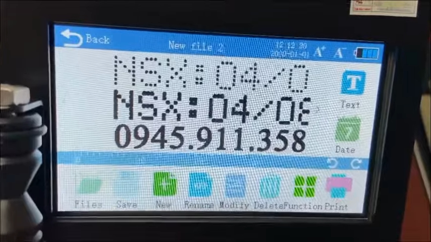Để bắt đầu soạn nội dung in trên máy in date cầm tay MX3, từ màn hình chính người dùng sẽ vào phần Edit, sau đó chọn New để tạo một file mới. Khi chọn New, máy sẽ tạo ra một file trắng để bắt đầu soạn nội dung in. Sau khi file mới được tạo, người dùng chỉ cần chạm vào vùng soạn thảo để nhập nội dung. Ví dụ có thể soạn nội dung “Ngày sản xuất”. Trong quá trình soạn thảo, nếu muốn thêm các ký tự đặc biệt như dấu hai chấm thì có thể vào phần Symbol để lựa chọn ký tự mong muốn. Trong mục Symbol có rất nhiều ký tự để người dùng lựa chọn và sử dụng trong nội dung in. Ngoài ra trong máy còn có phần Font chứa nhiều ký tự khác nhau, khi chọn ký tự trong Font xong thì cần chuyển lại chế độ chữ để tránh lỗi font khi tiếp tục soạn thảo văn bản. Nếu vẫn giữ chế độ Font thì khi nhập các ký tự phía sau rất dễ bị lỗi font chữ. Quy trình đúng là chọn ký tự đặc biệt trong Font, sau đó chuyển lại chế độ chữ ABC rồi tiếp tục nhập nội dung. Nếu nhập sai có thể sử dụng biểu tượng mũi tên xóa để chỉnh sửa lại nội dung, ví dụ như “Ngày hôm nay là 04/08/2021”.