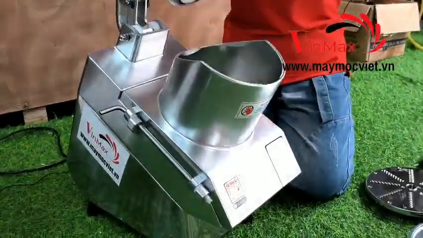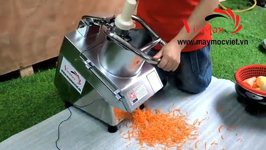 Để sử dụng máy, trước tiên cần cắm điện và bật công tắc nguồn, sau đó cho nguyên liệu vào cửa nạp phù hợp và dùng thanh đẩy để đưa thực phẩm xuống lưỡi dao. Ví dụ khi thái cà rốt bằng cửa đứng, chỉ cần cho cà rốt vào ống nạp và dùng thanh đẩy xuống, ngay lập tức các sợi cà rốt sẽ được cắt ra đều và đẹp. Khi sử dụng cửa ngang, người dùng cũng thực hiện thao tác tương tự với các loại nguyên liệu lớn hơn như su hào hoặc bắp cải.