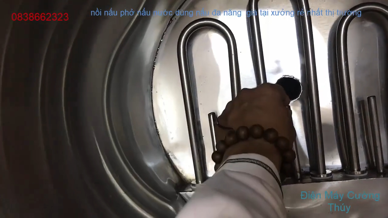 Chiếc nồi trong phần hướng dẫn này là nồi nấu phở dung tích 50 lít với công suất 3kW giúp đun nước nhanh và ổn định, thiết bị được thiết kế đa năng nên ngoài việc nấu nước phở còn có thể dùng để trần bánh phở, nấu nước sôi, luộc gà, nhúng gà hoặc chế biến nhiều loại thực phẩm khác giúp tiết kiệm thời gian và công sức trong quá trình nấu nướng.