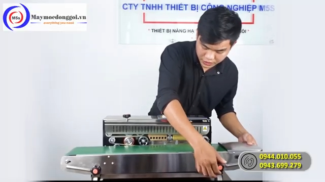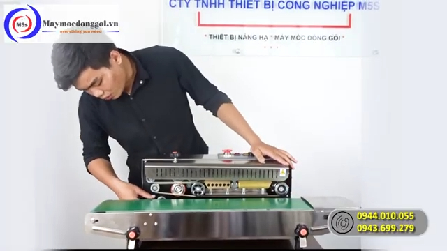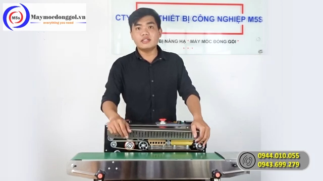 Sau khi nhiệt độ ổn định, người dùng chỉ cần đặt miệng túi lên băng tải, máy sẽ tự động kéo túi đi qua bộ phận hàn và tạo đường hàn kín.