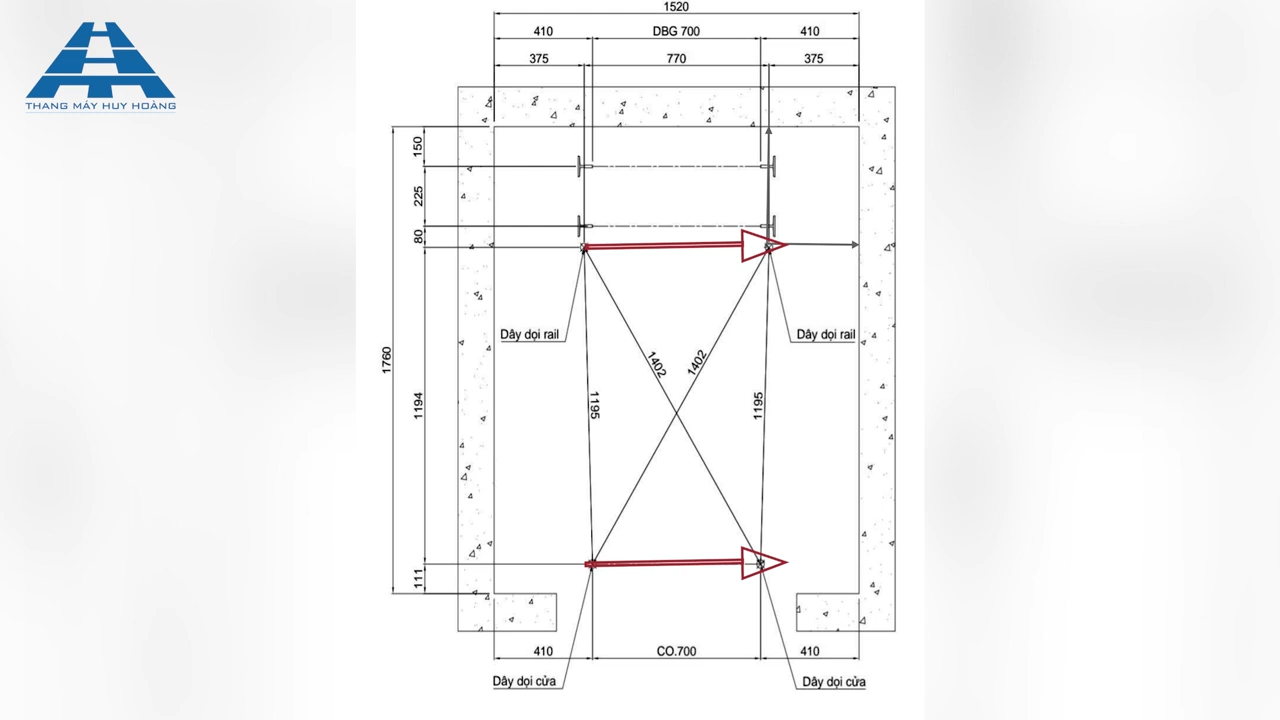 Trong quá trình thả chì cần ưu tiên theo kích thước thực tế của hố thang đã đo được. Nếu kích thước hố thang lớn hoặc nhỏ hơn bản vẽ trong phạm vi từ 0 đến 10 mm thì vẫn có thể tính toán và thả chì bình thường theo hướng dẫn. Nếu kích thước lớn hơn 10 mm theo chiều rộng cửa nhưng không ảnh hưởng đến vị trí thiết bị thì vẫn có thể tiến hành lắp đặt. Tuy nhiên nếu kích thước sai lệch quá lớn và ảnh hưởng đến vị trí lắp ray hoặc cửa tầng thì cần ưu tiên điều chỉnh vị trí dây chì để đảm bảo thiết bị lắp đúng theo thông số kỹ thuật. Trong trường hợp khoảng cách từ cửa ra tường quá lớn vượt khả năng lắp đặt thiết bị, cần tính toán lại mặt bằng trước khi thi công.