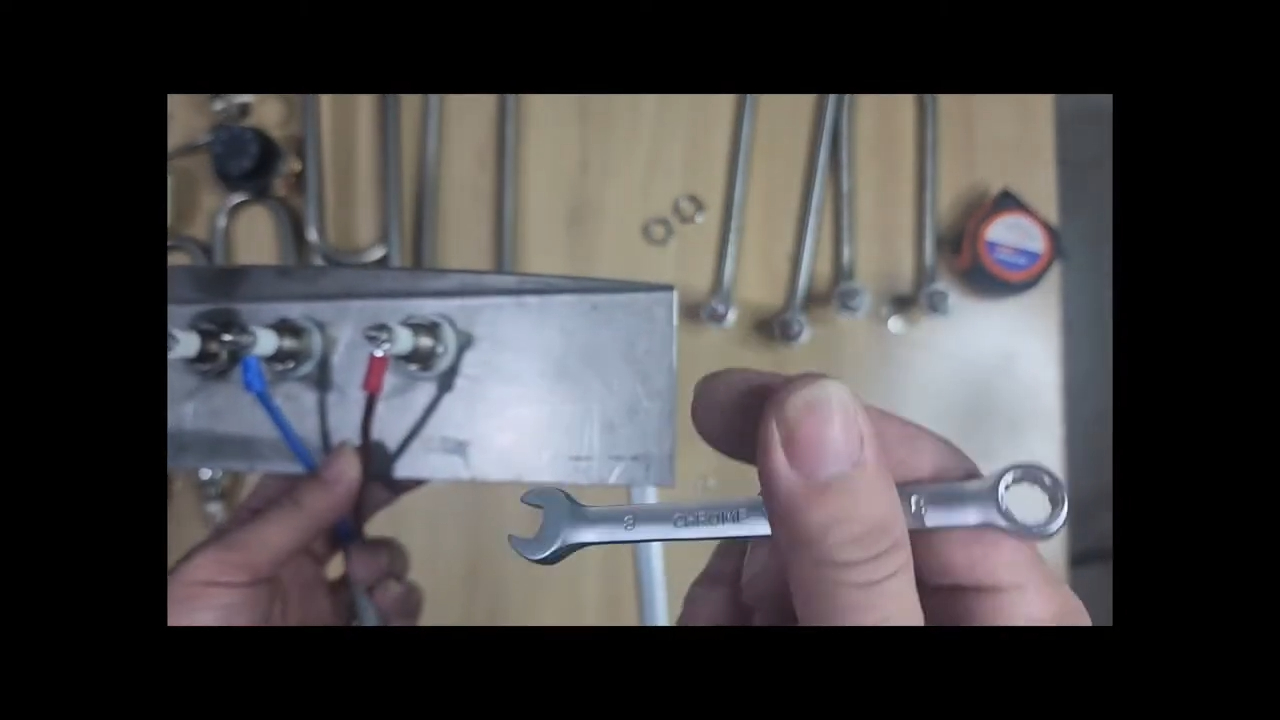 Để mà thay thế thì các bạn phải dùng cần nê số 8, đầu tiên là sẽ dùng cái cần nê có số 8 để tháo 2 con ốc siết nhỏ ở phía ngoài của thanh mai so, thao tác này giúp chúng ta tháo phần dây điện kết nối với thanh mai so ra trước khi tháo thanh gia nhiệt ra khỏi nồi nấu phở.