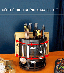 - Kệ dao thớt có khả năng xoay 360 ° với đế cắm dao, giúp dễ dàng lấy các vật dụng một cách thuận tiện.