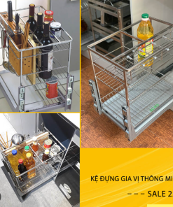 - Dùng để chứa nhiều gia vị trong nhà bếp, giúp thuận tiện hơn cho việc tìm kiếm khi cần sử dụng. Gồm 2 tầng, kiểu dáng nhỏ gọn, tiết kiệm không gian hiệu quả. Sản phẩm lắp đặt đơn giản một cách nhanh chóng và dễ dàng. Chất liệu inox 304 không gỉ, bền đẹp và có khả năng chịu lực tốt.
