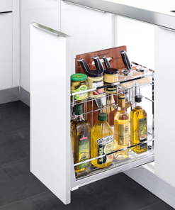 - Kệ đựng gia vị ray giảm chấn tủ 300mm: Mang thiết kế và chất lượng độc quyền của Higold, đem lại sự tiện dụng và thoải mái nhất cho khách hàng. Kệ được làm từ chất liệu inox 304 cao cấp, chống gỉ sét khi để các loại chai lọ gia vị mắm muối.
