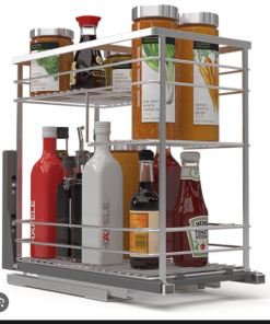 - Kệ gia vị Martin ray giảm chấn inox 304 tủ 400: Có 2 tầng với thiết kế hợp lý để chứa đầy đủ các phụ kiện nhà bếp như dao, thớt, xoong nồi và chai lọ gia vị. Điều này rất thuận tiện. Tầng trên dùng để đựng dao, nĩa và các lọ gia vị nhỏ gọn. Tầng dưới là khu vực để xoong nồi và các loại chai lọ gia vị mắm muối lớn hơn.
