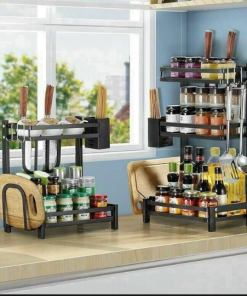 Kệ gia vị đa năng nhà bếp với kiểu dáng hiện đại cùng chức năng thông minh đã được đánh giá cao về sản phẩm và rất được chị em phụ nữ ưa chuộng. Sản phẩm giúp bạn sắp xếp không gian nhà bếp trở nên khoa học, gọn gàng và ngăn nắp. Kệ gia vị đa năng tiện dụng để cất giữ các lọ gia vị cùng nhiều đồ vật khác. Kệ gia vị còn có chức năng giữ được lọ, hũ gia vị, nước mắm, bình gia vị cùng các dụng cụ gồm muỗng, đũa, dao, muỗng, miếng thớt. Bên cạnh ra, kệ cũng để vừa các dụng cụ gồm máy xay thịt, máy xay sinh tố, nồi nước sôi, máy xay thịt bằng tay không cùng nhiều các dụng cụ khác.