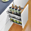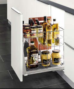 Giá gia vị nâng hạ tự động sẽ là một lựa chọn hoàn hảo đối với những người mong muốn tối ưu diện tích và gia tăng sự tiện nghi cho căn bếp. Hệ thống giá gia vị thông minh cấu tạo nhằm giúp nâng hạ linh hoạt khay chứa gia vị, giúp người nội trợ nhanh chóng tìm kiếm và dùng từng món gia vị trong khi nấu ăn.