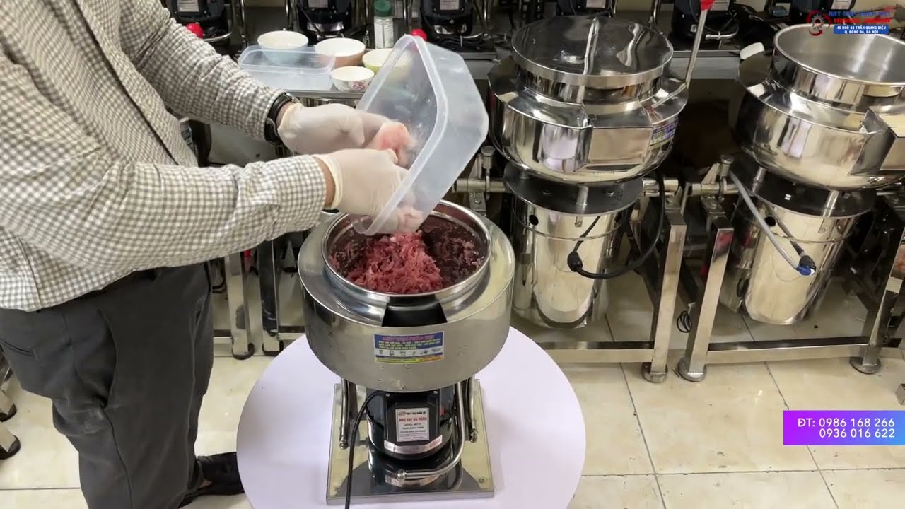 Đây là máy xay giò chả 1kg có khoang lạnh của Máy Thực Phẩm Việt, hay còn gọi là máy xay chả lụa 1kg có bao đá lạnh. Thành phẩm giò sống rất dẻo, mịn, có độ quánh cao như kẹo kéo.