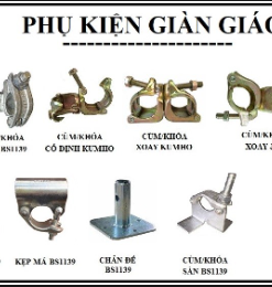 Phụ kiện giàn giáo là các bộ phận được sử dụng để lắp ráp giàn giáo và tạo thành một hệ thống giàn giáo vững chắc và an toàn. Phụ kiện giàn giáo có đa dạng mẫu mã khác nhau, mỗi một mẫu mã có chức năng riêng biệt. Phụ kiện giàn giáo là một thành phần quan trọng của khung giàn giáo. Chúng bảo đảm giàn giáo vững chắc, an toàn và thuận tiện sử dụng. Phụ kiện giàn giáo phải đảm bảo sử dụng theo quy chuẩn để đảm bảo an toàn cho người lao động. Phụ kiện giàn giáo là một bộ phận quan trọng trong xây dựng hiện đại. Chúng giúp đảm bảo an toàn tuyệt đối trong thi công và quá trình xây dựng.
