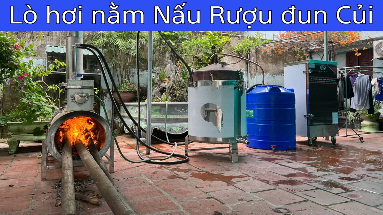 1. Giới thiệu lò hơi đốt củi cấp hơi sang nồi nấu rượu và tủ nấu cơm