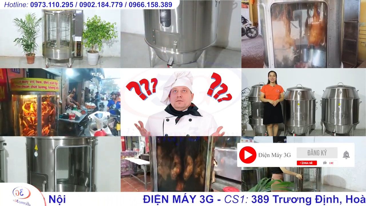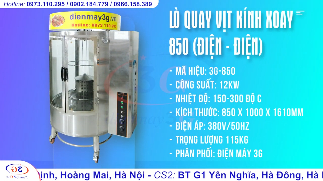 Lò Quay Vịt Gà Kính Xoay 850 Sử Dụng Điện 100%