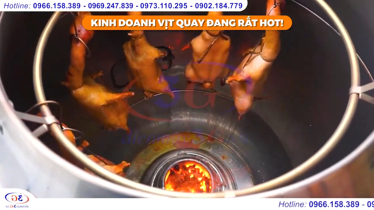 Hệ thống móc treo và cơ chế quay tròn – Gà vịt chín đều, lớp da vàng giòn