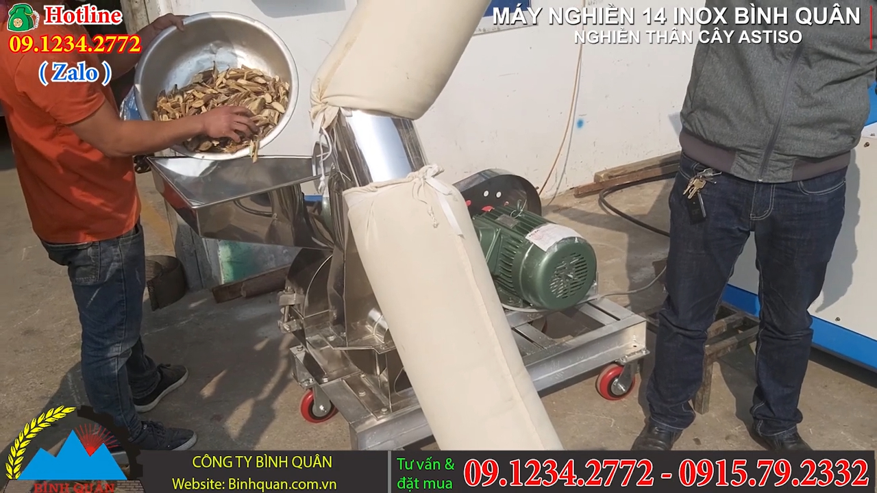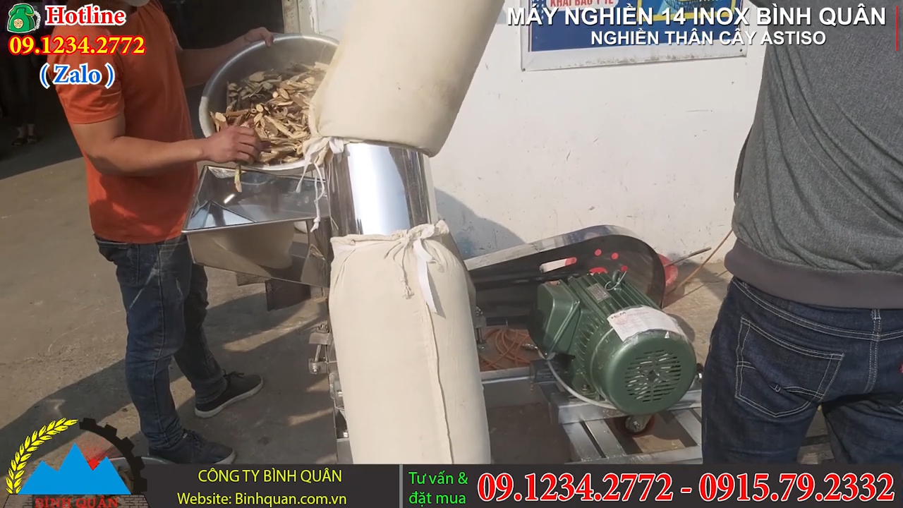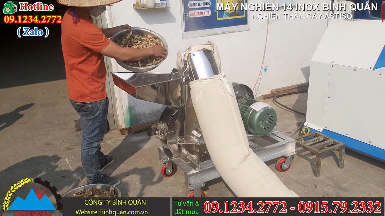 Công ty Bình Quân xin chào mừng quý vị khách hàng đã quay trở lại. Trong video ngày hôm nay, chúng tôi giới thiệu một trường hợp thực tế khi khách hàng mang trực tiếp nguyên liệu từ xưởng chế biến của mình đến để thử máy. Nguyên liệu đó chính là thân cây Atiso đã được phơi khô và cắt nhỏ, dùng để sản xuất Trà túi lọc. Vậy làm thế nào để từ nguyên liệu thân atiso khô này có thể chế biến thành thành phẩm đạt yêu cầu để đóng gói trà?. Để chế biến nguyên liệu nhanh chóng và hiệu quả hơn so với phương pháp thủ công, giải pháp phù hợp là sử dụng máy nghiền bột. Nếu làm thủ công, quá trình nghiền hoặc cắt nhỏ sẽ mất rất nhiều thời gian, đồng thời cần thuê nhiều nhân công để đáp ứng sản lượng lớn. Trong khi đó, với một dòng máy nghiền bột chuyên dụng được thiết kế bằng inox sáng bóng, doanh nghiệp có thể xử lý nguyên liệu nhanh hơn, tiết kiệm chi phí và đảm bảo vệ sinh thực phẩm.