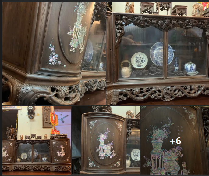 - Tủ chè gỗ gụ khảm cẩn ốc đỏ