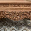 Mỗi chi tiết trên cuốn thư đều được nghệ nhân đục tay tỉ mỉ, mất hơn 3 tháng để hoàn thiện bản thiết kế và thực hiện, với phối cảnh tinh xảo giữa thiên nhiên và chim muông, thể hiện sự uyển chuyển và nghệ thuật tinh tế. Kích thước của mẫu cuốn thư này cũng vượt trội so với các sản phẩm thông thường, với chiều dài 1,97m, chiều cao 87cm và độ dày 11 phân liền khối, tương tự dạ tiền của một chiếc sập thờ vua, đảm bảo độ bền vững và tính thẩm mỹ cao.
