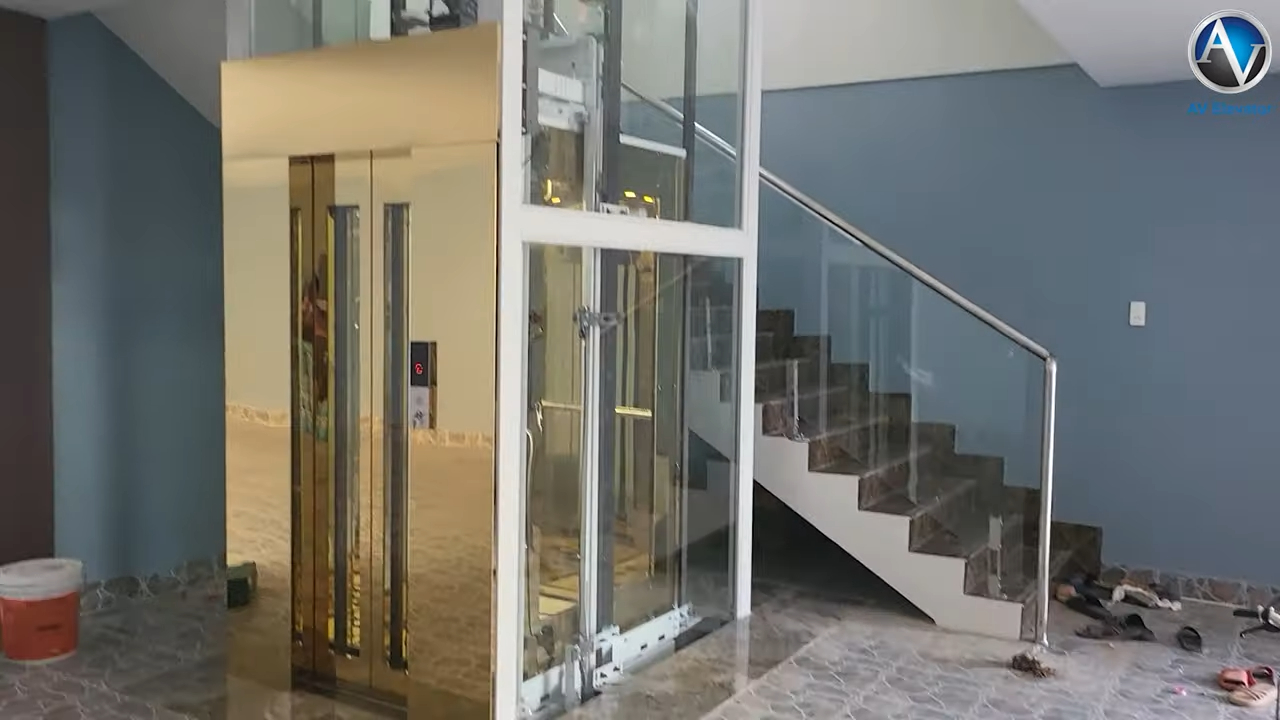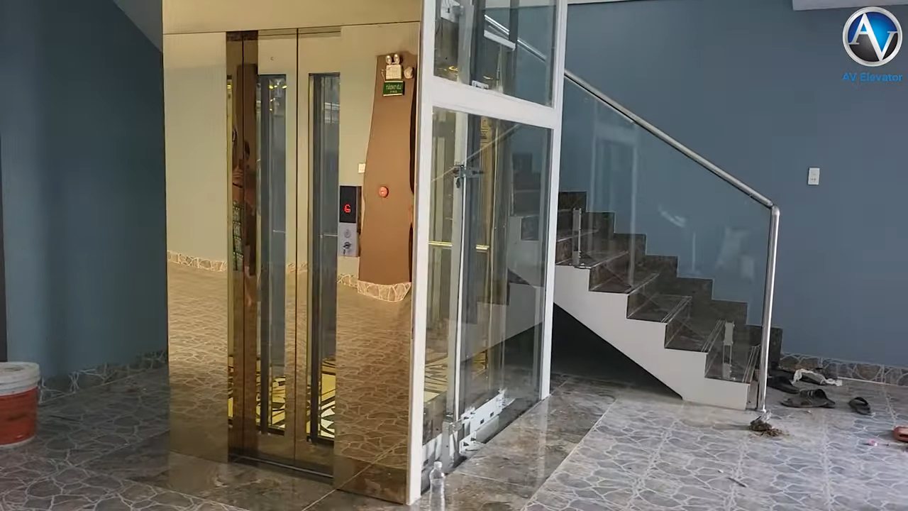 Bây giờ mình sẽ xuống tầng trệt để quay chi tiết cho các bạn xem về thiết kế và tính thẩm mỹ của chiếc thang máy này.