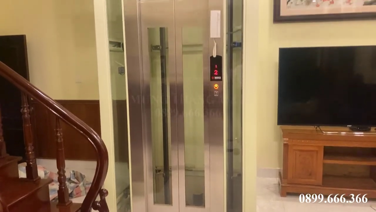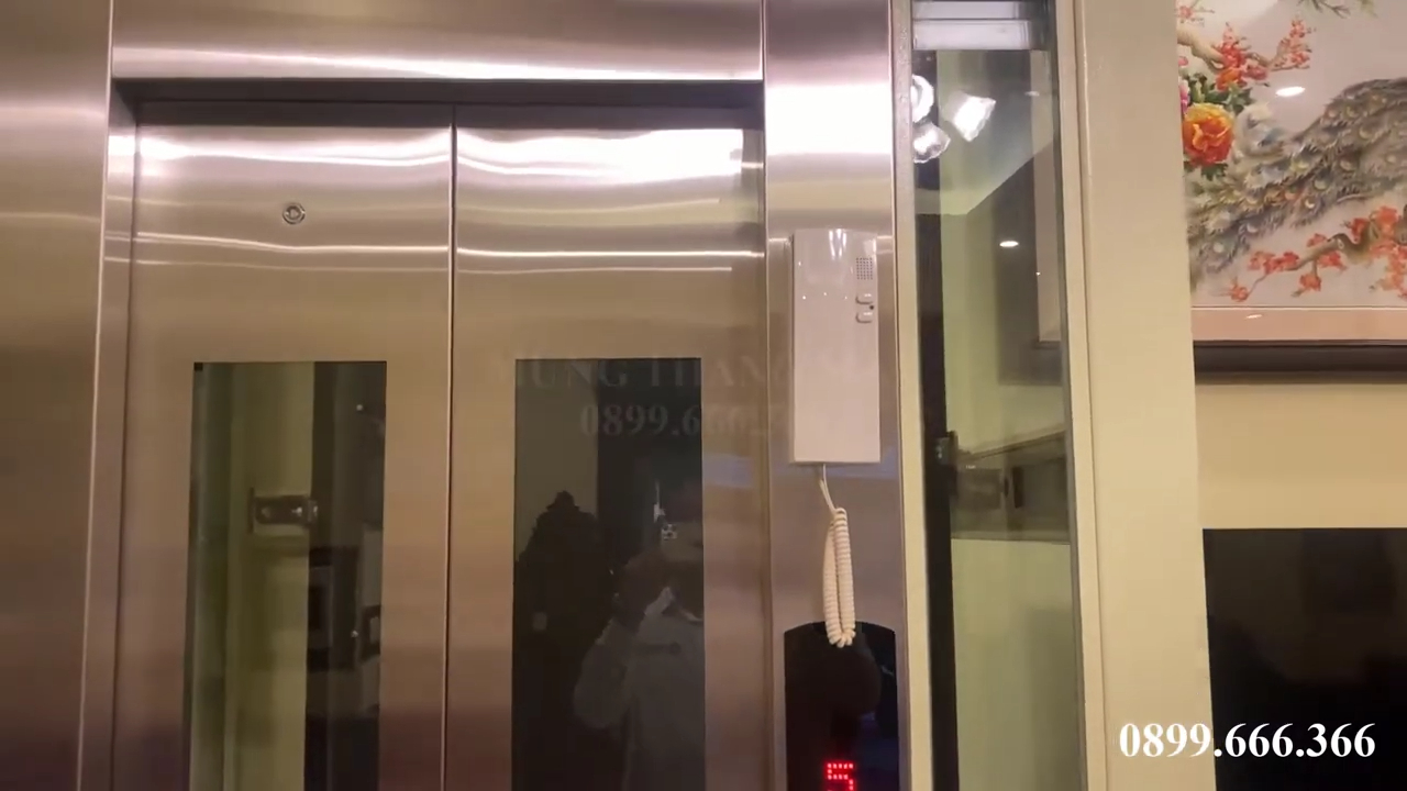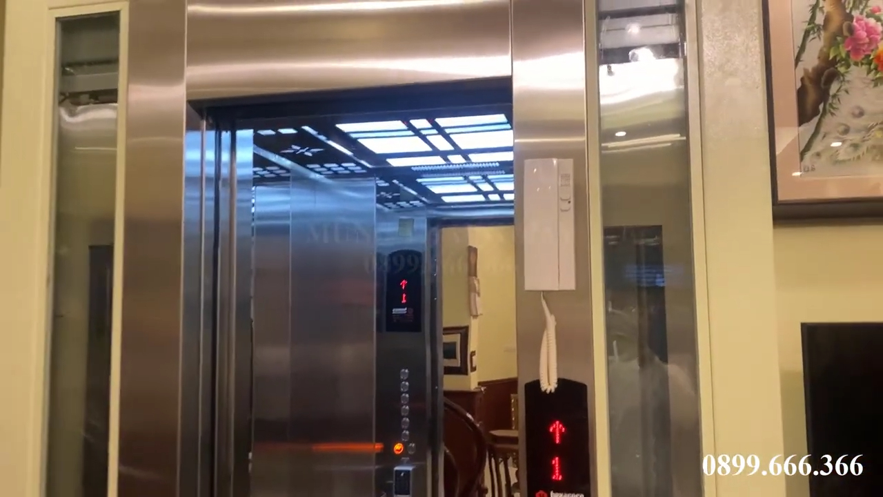 Ngoài ra trong cabin còn có hệ thống điện thoại nội bộ để liên lạc với bên ngoài trong trường hợp cần thiết. Đây là một trang bị an toàn rất quan trọng đối với thang máy gia đình.