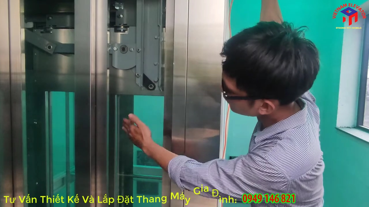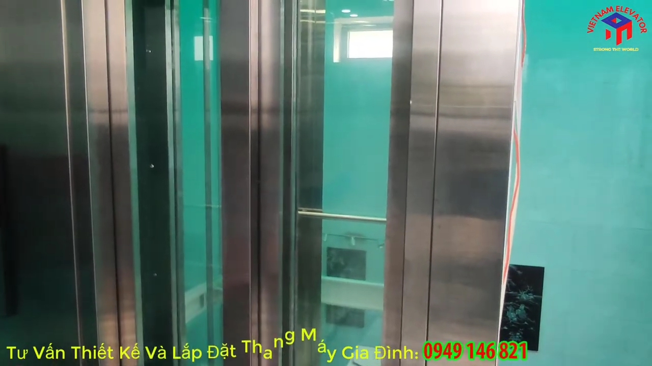 Bạn đang tìm kiếm một mẫu thang máy vừa đảm bảo công năng vận chuyển hàng hóa, vừa mang lại nét thẩm mỹ đẳng cấp cho biệt thự hoặc văn phòng công ty? nhabephiendai.net xin giới thiệu dòng thang máy kính công nghệ mới với thiết kế cửa lùa 2 cánh mở về một bên, giúp tối ưu diện tích thông thủy cho những mặt tiền hẹp. Với kích thước hố thang ngang 1,4m và sâu 1,6m, hệ thống được tối ưu để cabin đạt chiều ngang 1m và chiều sâu 1,3m, không gian đủ rộng để di chuyển thoải mái từ 4–5 người cùng lúc đồng thời vẫn thuận tiện cho việc vận chuyển hàng hóa giữa các tầng. Thay vì sử dụng những cánh cửa inox kín truyền thống, mẫu thang này được thiết kế cửa tầng bằng kính cường lực khổ lớn kết hợp khung inox sọc nhuyễn tinh tế, tạo nên sự đồng bộ hoàn hảo với hệ vách kính bao quanh giúp không gian trở nên sáng sủa, hiện đại và sang trọng hơn.