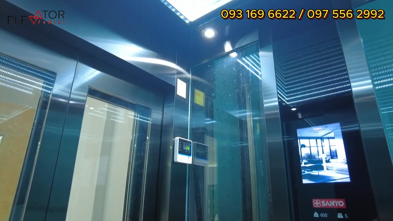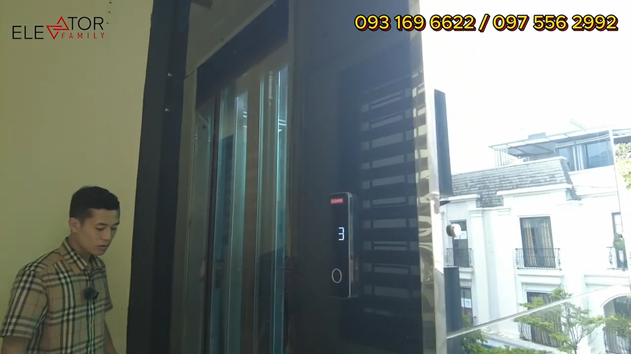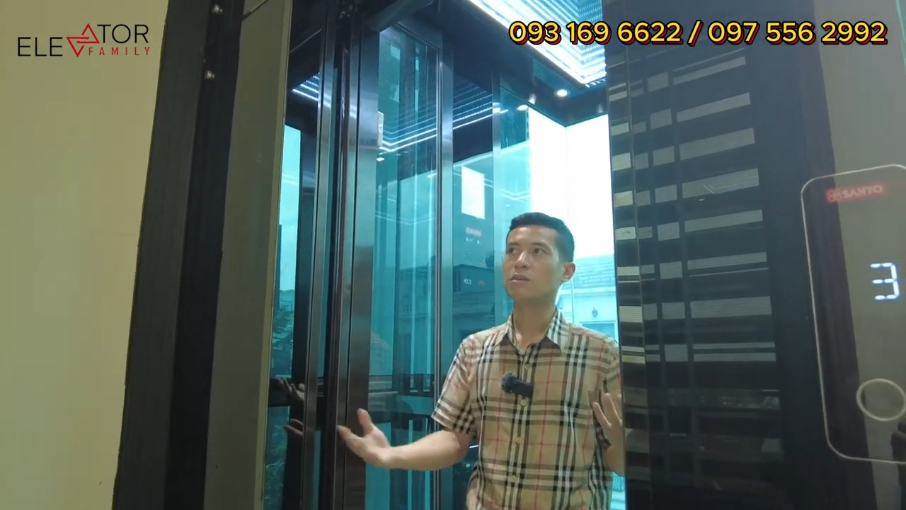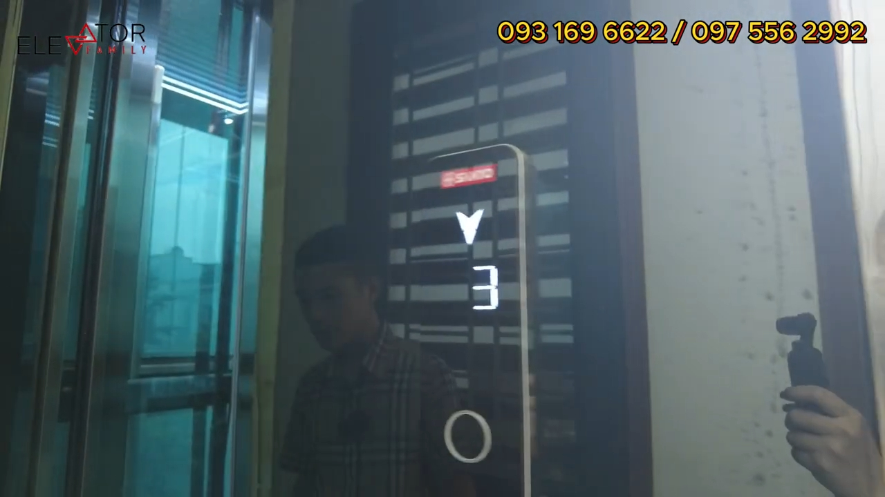 Đây là bảng gọi tầng và màn hình hiển thị tầng của thang máy. Như mình đã chia sẻ, với dòng thang nhập khẩu nguyên chiếc thì khách hàng có thể lựa chọn nhiều phương án khác nhau để phù hợp với điều kiện công trình và tài chính. Ví dụ như có thể sử dụng khung thép và kính trong nước để tiết kiệm chi phí, còn phần máy và hệ thống thang sẽ nhập khẩu.