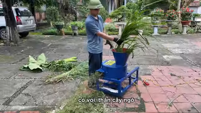 Ưu điểm thứ hai là máy có khả năng băm đa dạng nguyên liệu. Đúng như tên gọi là máy băm chuối đa năng, ngoài chức năng băm thân cây chuối với năng suất từ 100 đến 180 thân mỗi giờ, máy còn có thể băm các loại cỏ, thân cây mềm khác như cỏ voi, thân cây ngô, rau bèo… với năng suất từ 300 đến 500 kg mỗi giờ. Nhờ vậy bà con có thể tận dụng nhiều loại nguyên liệu sẵn có tại địa phương chỉ với một chiếc máy duy nhất.