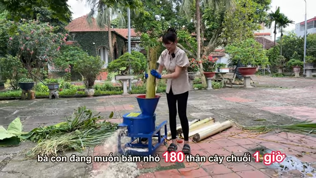 Máy được thiết kế chuyên dùng để băm nhỏ thân cây chuối có đường kính lên tới khoảng 15 cm, mỗi lần đưa nguyên liệu vào chỉ mất từ 10 đến 20 giây. Với năng suất làm việc liên tục, trung bình mỗi giờ máy có thể băm nhỏ từ 100 đến 180 thân cây chuối. Mỗi thân chuối nặng khoảng 10 đến 15 kg, nhờ đó bà con có thể nhanh chóng chuẩn bị được một lượng lớn thức ăn tươi cho vật nuôi.