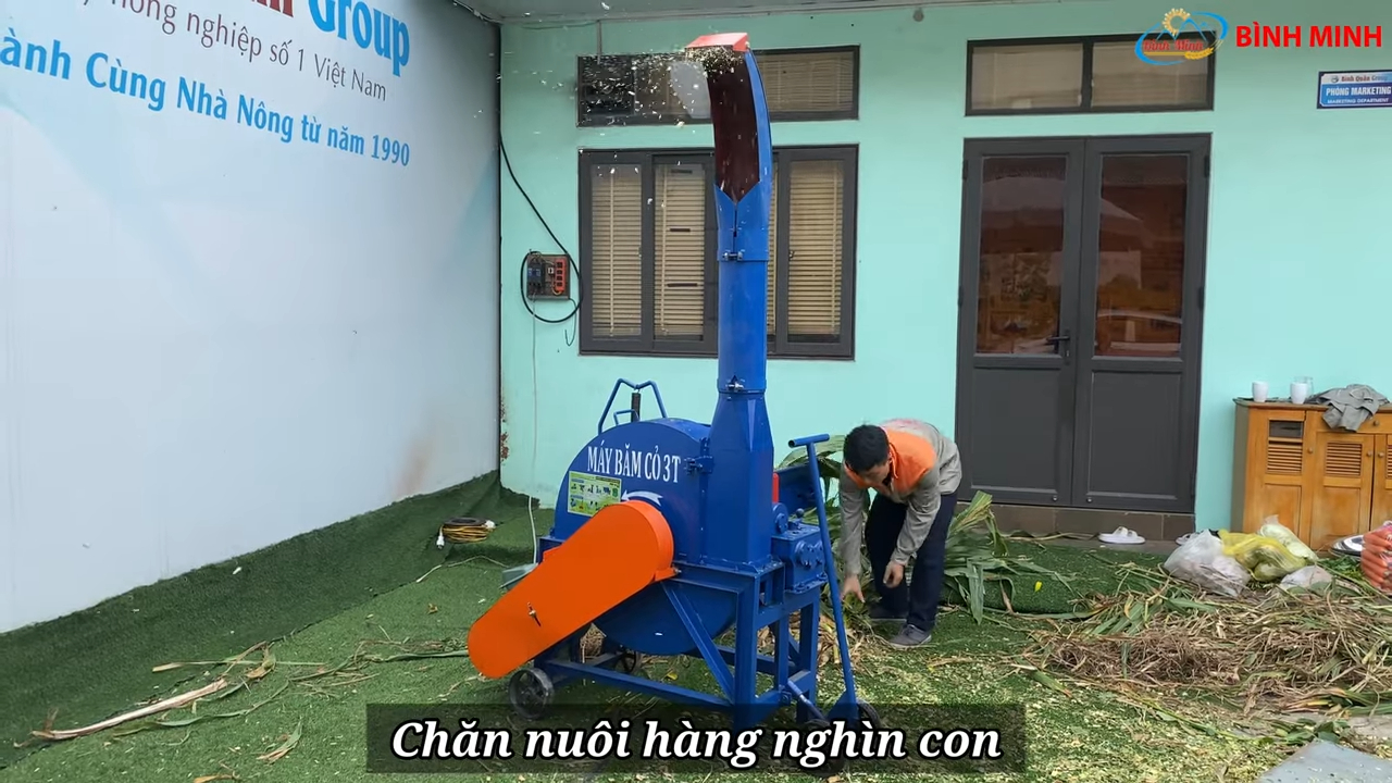 Thiết bị chuyên dùng để băm nhỏ các loại nguyên liệu như cỏ voi, cỏ tự nhiên và nhiều loại phụ phẩm nông nghiệp khác nhằm tạo ra nguồn thức ăn tươi cho gia súc như trâu, bò và nhiều loại vật nuôi ăn cỏ khác.
