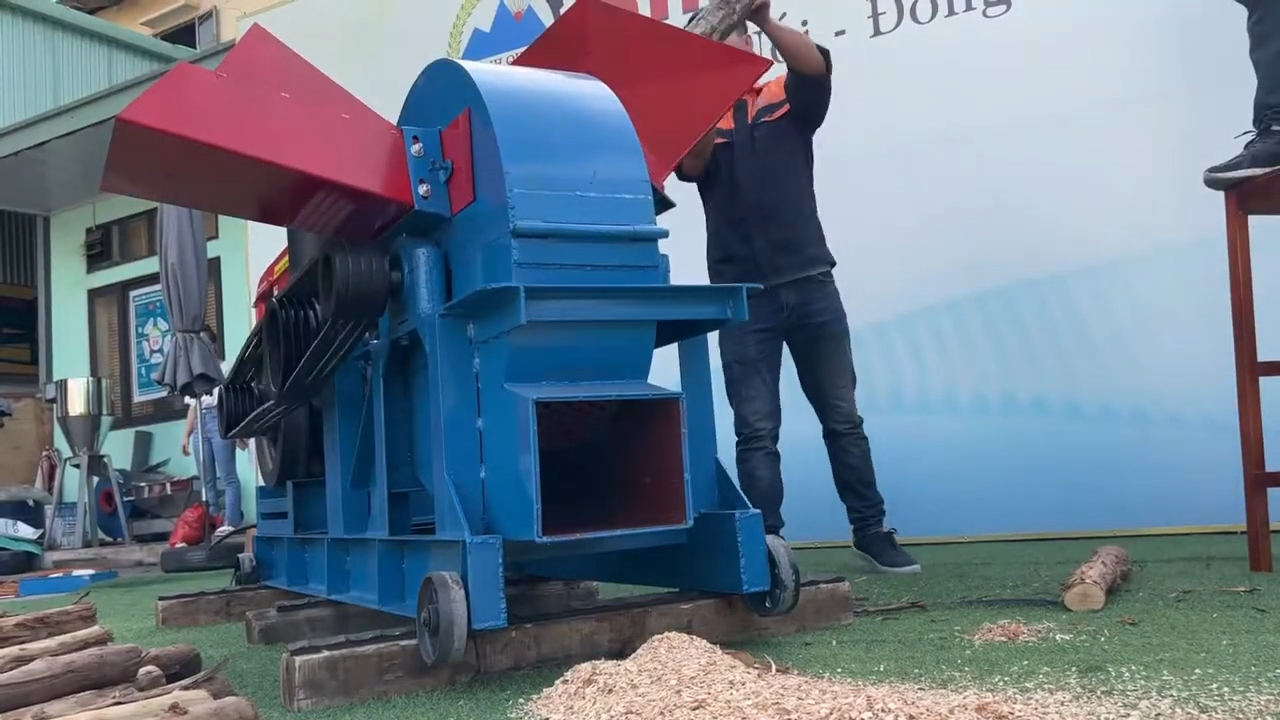 Trước khi vận hành máy, người sử dụng nên kê máy cố định để hạn chế sự dịch chuyển trong quá trình hoạt động, nhất là khi máy được đặt trên hệ thống bánh xe di chuyển. Sau đó cần khởi động đầu nổ và để máy chạy không tải trong khoảng 10 đến 15 giây trước khi đưa nguyên liệu vào. Việc này giúp hệ thống quay ổn định, đảm bảo tốc độ của trục băm đạt mức tối ưu trước khi xử lý nguyên liệu. Khi máy đã đạt đủ tốc độ, việc nạp nguyên liệu sẽ diễn ra trơn tru hơn và hạn chế tình trạng kẹt máy. Nếu nguyên liệu là gỗ khô thì năng suất máy sẽ càng cao, quá trình băm diễn ra nhanh và dễ dàng hơn, có thể đạt năng suất khoảng 500 đến 1.000kg mỗi giờ tùy loại gỗ.