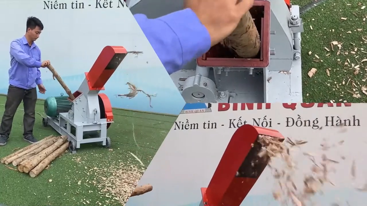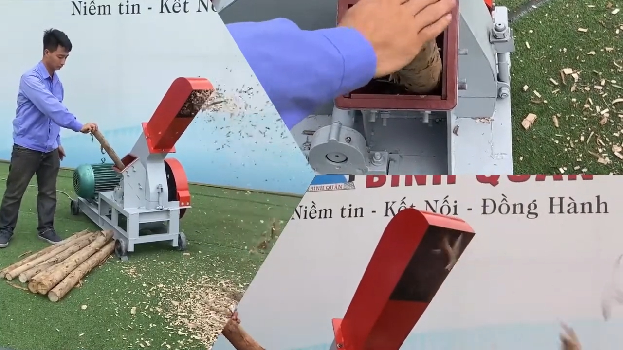 Nhằm đáp ứng nhu cầu chế biến và sản xuất mảnh dăm gỗ với số lượng lớn trong ngành chế biến gỗ và sinh khối, Công ty sản xuất và thương mại Bình Quân xin giới thiệu tới quý khách hàng dòng sản phẩm máy băm gỗ phiên bản mới. Đây là dòng máy băm gỗ mảnh 2T được nghiên cứu và chế tạo nhằm giúp xử lý hiệu quả các loại nguyên liệu như thanh gỗ thừa, gỗ tạp, gỗ tươi hoặc gỗ khô thành dạng mảnh dăm gỗ có kích thước lớn, phục vụ cho nhiều mục đích sản xuất khác nhau. Trong video này, chúng ta sẽ cùng tìm hiểu chi tiết về dòng sản phẩm mới nhất do công ty nghiên cứu và chế tạo. Ngay bên cạnh tôi đây chính là chiếc máy băm gỗ mảnh 2T – dòng sản phẩm đang nhận được rất nhiều sự quan tâm từ các khách hàng đang có nhu cầu đầu tư thiết bị chế biến gỗ.