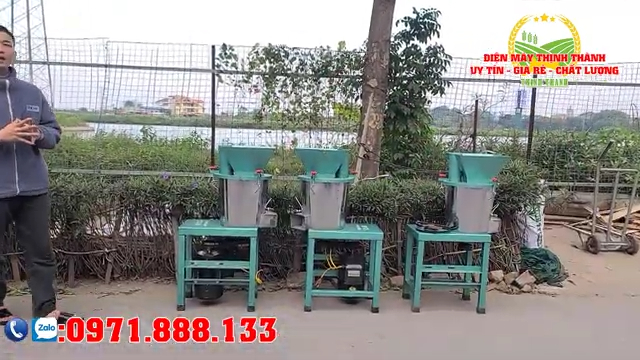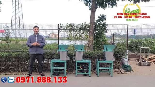 Hôm nay cơ sở chúng em xin giới thiệu tới bà con dòng máy băm nghiền đa năng, một loại máy rất phù hợp cho các hộ chăn nuôi gia đình. Bây giờ chúng ta sẽ cùng đi vào phần giới thiệu chi tiết cấu tạo của một chiếc máy hoàn chỉnh. Hiện tại máy đang được lắp động cơ công suất 2,2 kW của Toàn Phát hoặc thương hiệu Thành Hưng, với lõi dây đồng 100%. Với dòng động cơ này, bên cơ sở sẽ bảo hành cho quý vị và bà con trong vòng 12 tháng. Trong thời gian bảo hành, nếu gặp các sự cố như chập điện hoặc lỗi kỹ thuật thì bên chúng em sẽ hỗ trợ đổi mới cho bà con.
