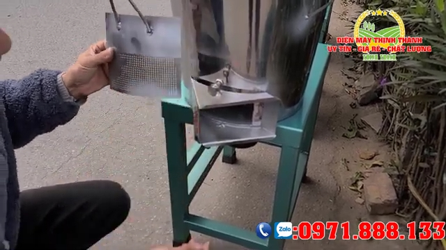 Ngoài ra nếu bà con đã có sẵn động cơ ở nhà thì có thể mua riêng khung máy. Một bộ khung hoàn chỉnh bao gồm buồng băm, puly, dây curoa và các chi tiết lắp ráp, bà con chỉ cần lắp thêm động cơ vào là sử dụng được. Giá của bộ khung hiện tại khoảng 3.300.000 đồng.
