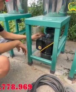 Phần motor của máy sử dụng động cơ công suất 2.2kW, chạy điện 220V, phù hợp với điện dân dụng của các hộ gia đình. Motor được lắp gọn phía dưới khung máy, vừa giúp máy gọn gàng hơn vừa giúp bảo vệ motor tốt hơn trong quá trình sử dụng. Motor được truyền động lên buồng nghiền thông qua dây curoa và hệ thống puly, giúp truyền lực mạnh và ổn định. Dây curoa sử dụng loại bản A28, đây là loại dây phổ biến, dễ thay thế khi cần thiết. Motor của máy được bảo hành 12 tháng, vì vậy bà con có thể yên tâm sử dụng lâu dài.