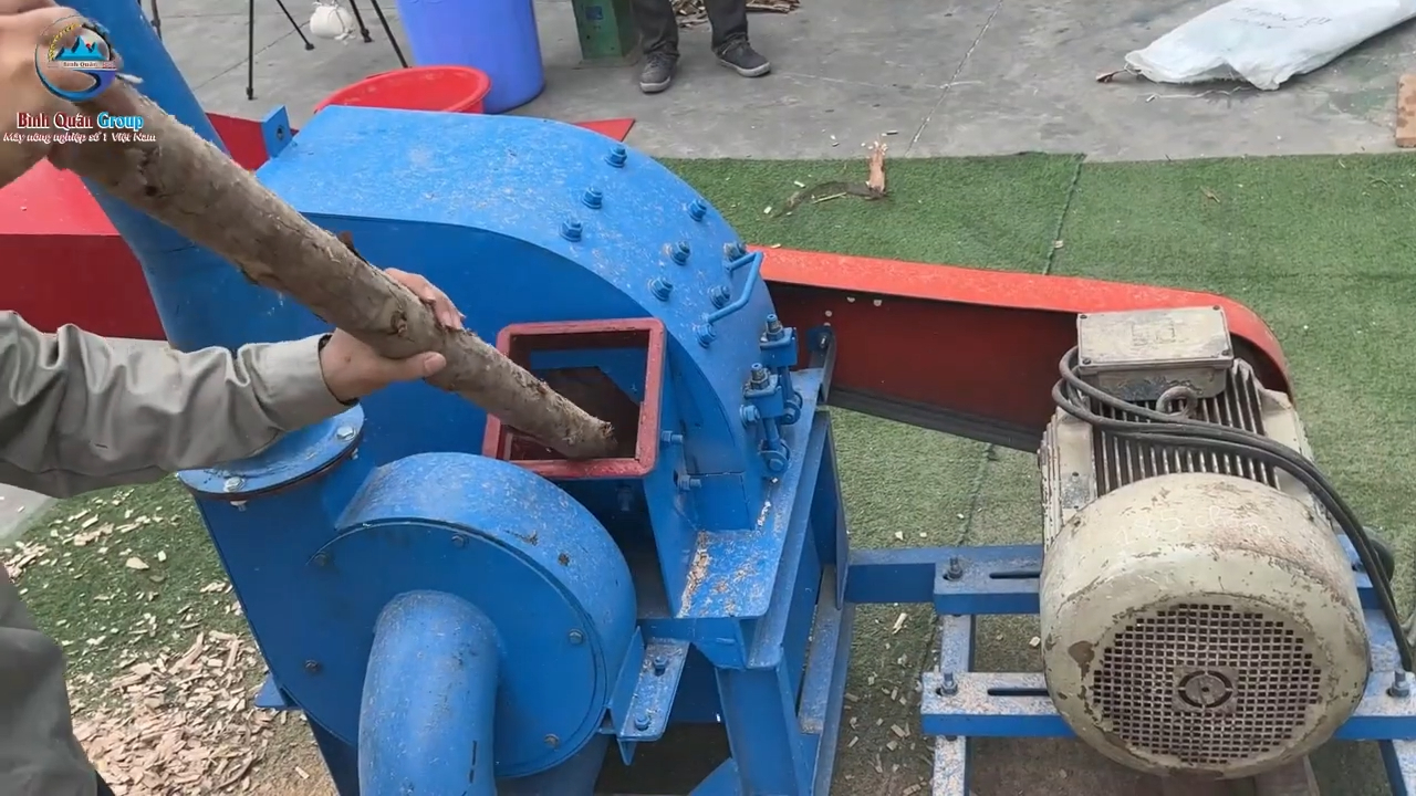 Buồng làm việc của máy được trang bị hệ thống dao băm và búa nghiền chắc chắn, đi kèm với bộ sàng lọc giúp kiểm soát kích thước thành phẩm. Máy sử dụng động cơ điện 3 pha công suất từ khoảng 18,5 kW đến 22 kW, mang lại khả năng vận hành mạnh mẽ và ổn định. Với cấu hình này, máy có thể đạt năng suất trung bình từ khoảng 200 đến 300 kg nguyên liệu mỗi giờ, tùy thuộc vào loại nguyên liệu và độ ẩm của gỗ.