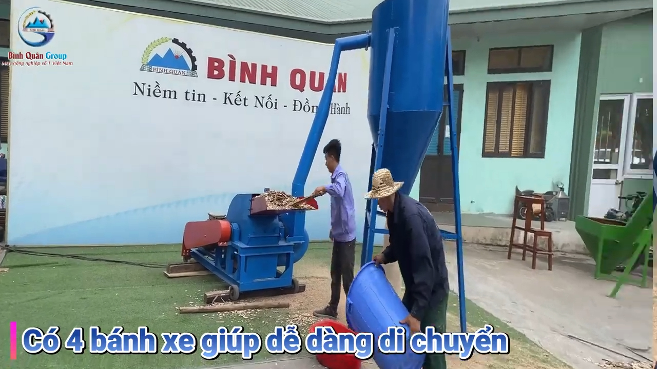 Sau khi nguyên liệu được băm và nghiền nhỏ, thành phẩm sẽ được hệ thống quạt gió thổi qua đường ống và đưa ra ngoài cửa xả. Máy cũng có thể kết hợp với túi chứa hoặc hệ thống thu gom để thuận tiện cho việc thu thành phẩm, đồng thời hạn chế thất thoát nguyên liệu trong quá trình làm việc.