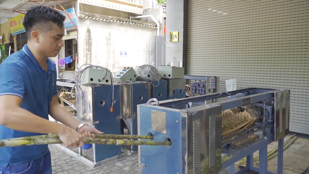 Để kiểm tra khả năng làm việc của máy, chúng tôi đưa vào hai cây mía có hình dạng rất khó xử lý gồm một cây hình chữ S và một cây hình chữ C, cả hai đều rất ngắn, chiều dài chỉ hơn 1 mét. Đây là loại mía mà nhiều máy bào mía thông thường trên thị trường rất khó xử lý. Tuy nhiên với máy bào mía 2 cây của nhabephiendai.net – 0966408078, chúng tôi tiếp tục chạy ở tốc độ 70-50 nhằm chứng minh sức mạnh của động cơ. Trong suốt quá trình chạy thử, hai ly nước vẫn được đặt trên thân máy để kiểm tra độ ổn định. Dù chạy ở tốc độ cao, máy vẫn hoạt động ổn định, không bị rung mạnh và không làm đổ hai ly nước đặt trên máy.