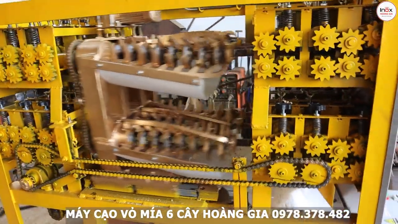 Trong lúc chạy, chỉ cần bó mía đưa vào là máy tự kéo rất mạnh. Khi bào xong một lượt khoảng 100% bề mặt mía đã sạch và bóng. Những cây mía to, mắt mía lớn hay phần gốc cứng máy vẫn xử lý được.