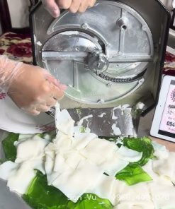 Máy còn cho phép thái đan xen nhiều loại thạch cùng lúc như thạch dừa trắng và thạch lá nếp xanh, tạo ra những lát thạch so le màu sắc vô cùng bắt mắt. Chỉ cần nạp nguyên liệu liên tục vào hộc chứa, máy sẽ cắt ra thành phẩm đều tăm tắp, giúp quá trình làm topping cho quán chè trở nên nhanh chóng và hiệu quả hơn. Với tốc độ cắt cực nhanh, máy có thể xử lý khối lượng lớn thạch chỉ trong thời gian ngắn, đúng nghĩa “vèo phát xong ngay”, rất phù hợp cho các quán đông khách hoặc bếp ăn công nghiệp.