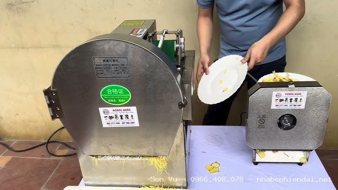 nhabephiendai.net cũng hướng dẫn bà con cách sắp xếp gừng trong hộc chứa để kiểm soát hình dạng thành phẩm. Khi đặt gừng nằm dọc ngay ngắn, máy sẽ cho ra những lát dài, đều và đẹp; còn nếu xếp gừng lộn xộn, thành phẩm sẽ nhỏ và không đồng đều. Việc sắp xếp nguyên liệu đúng cách giúp lát gừng đạt tính thẩm mỹ cao, đặc biệt phù hợp với các dòng mứt gừng cao cấp.